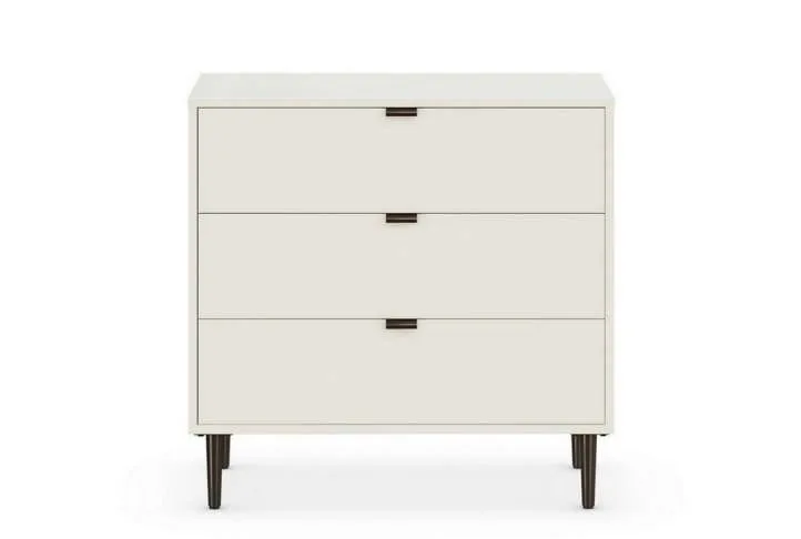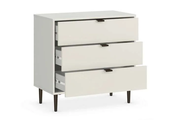 The Quinn 3 Drawer Chest in White is a modern, sleek storage solution that will look equally good in your living room or bedroom. The chest features 3 good sized drawers, brushed metal legs and lacquered handles.