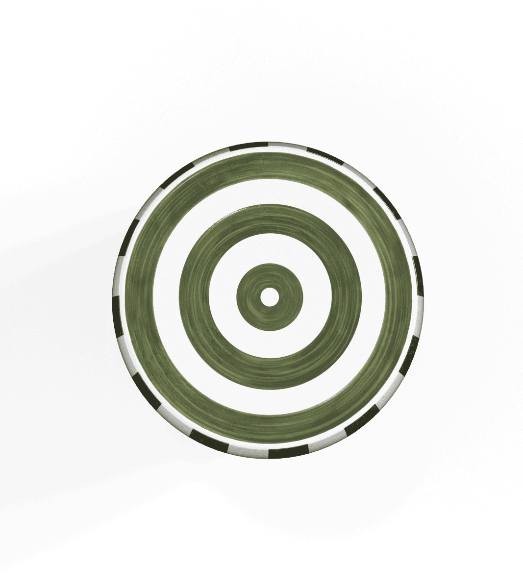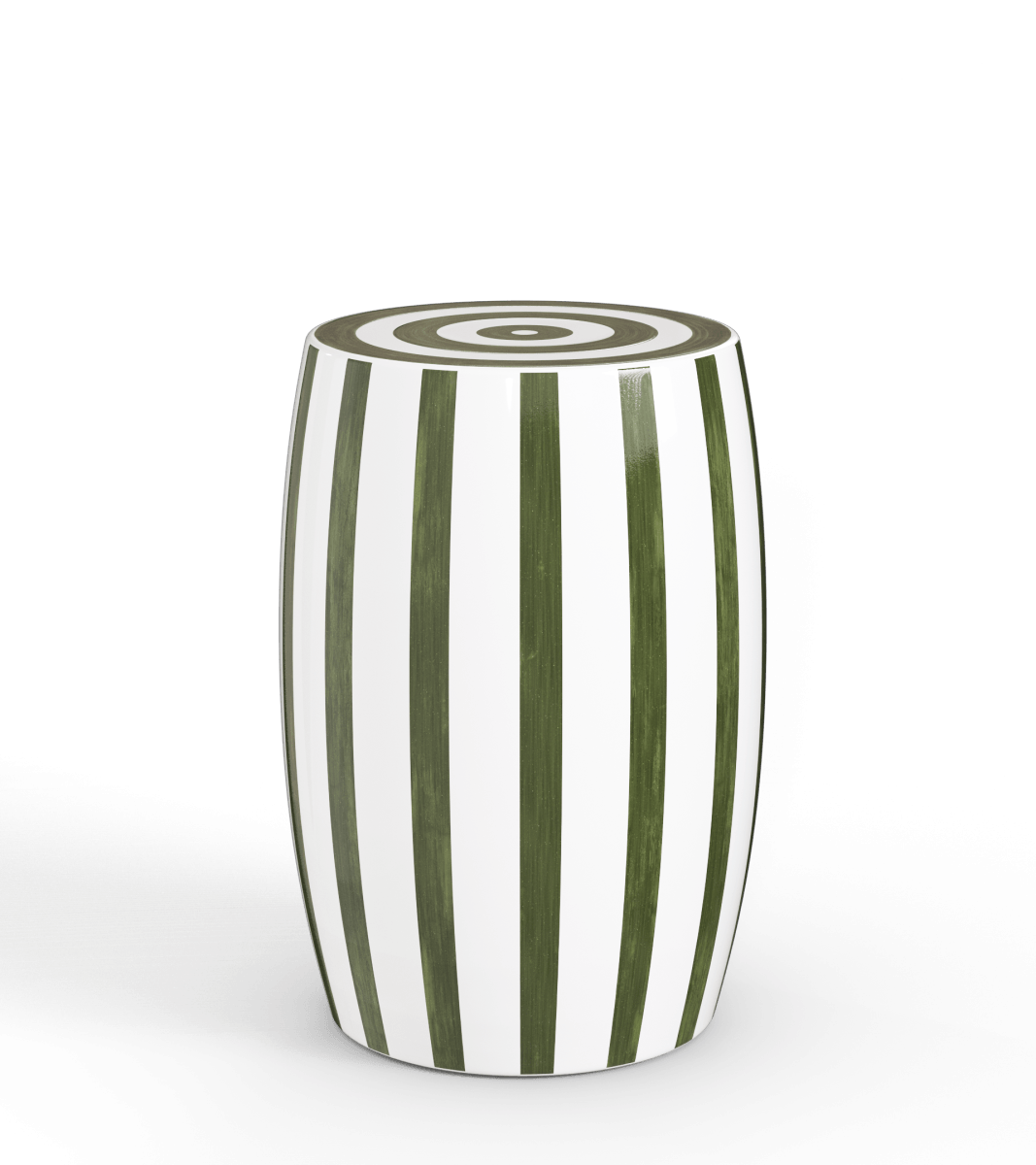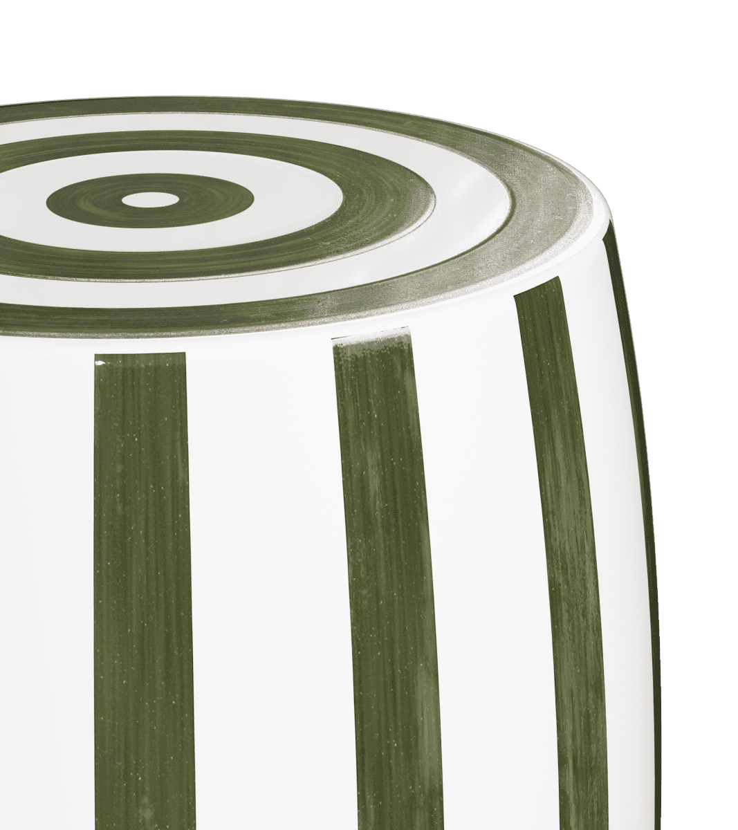 Handcrafted with care, this stool features a spruce green and white striped pattern reminiscent of the classic peppermint humbug, offering a playful yet sophisticated touch. Its 100% ceramic composition ensures durability, making it suitable for both indoor and outdoor settings.