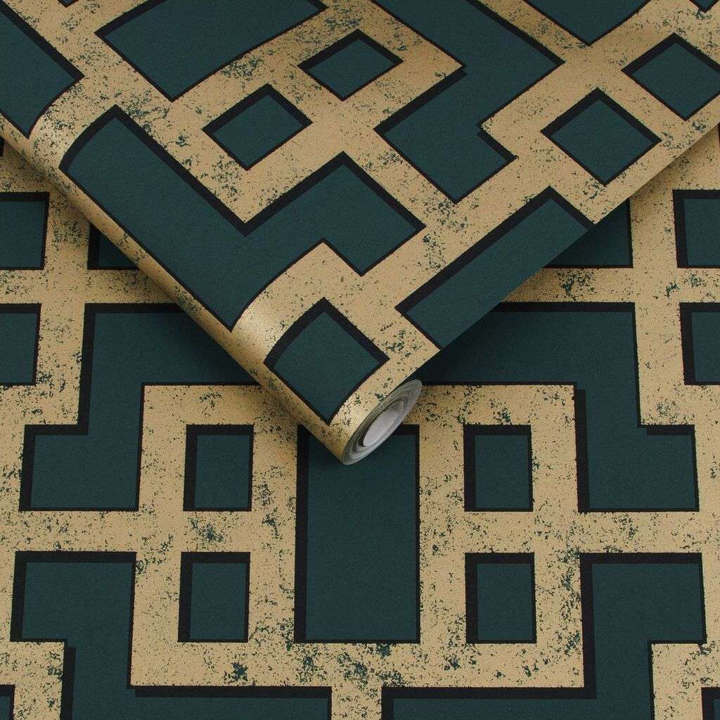The Rendo Green & Copper wallpaper features and interlocking metallic design on a green base pallet that will bring a stylish touch and feel to any room. The wallpaper can be mixed with a matching paint from Graham & Brown for the ultimate finish that will last for years to come.
