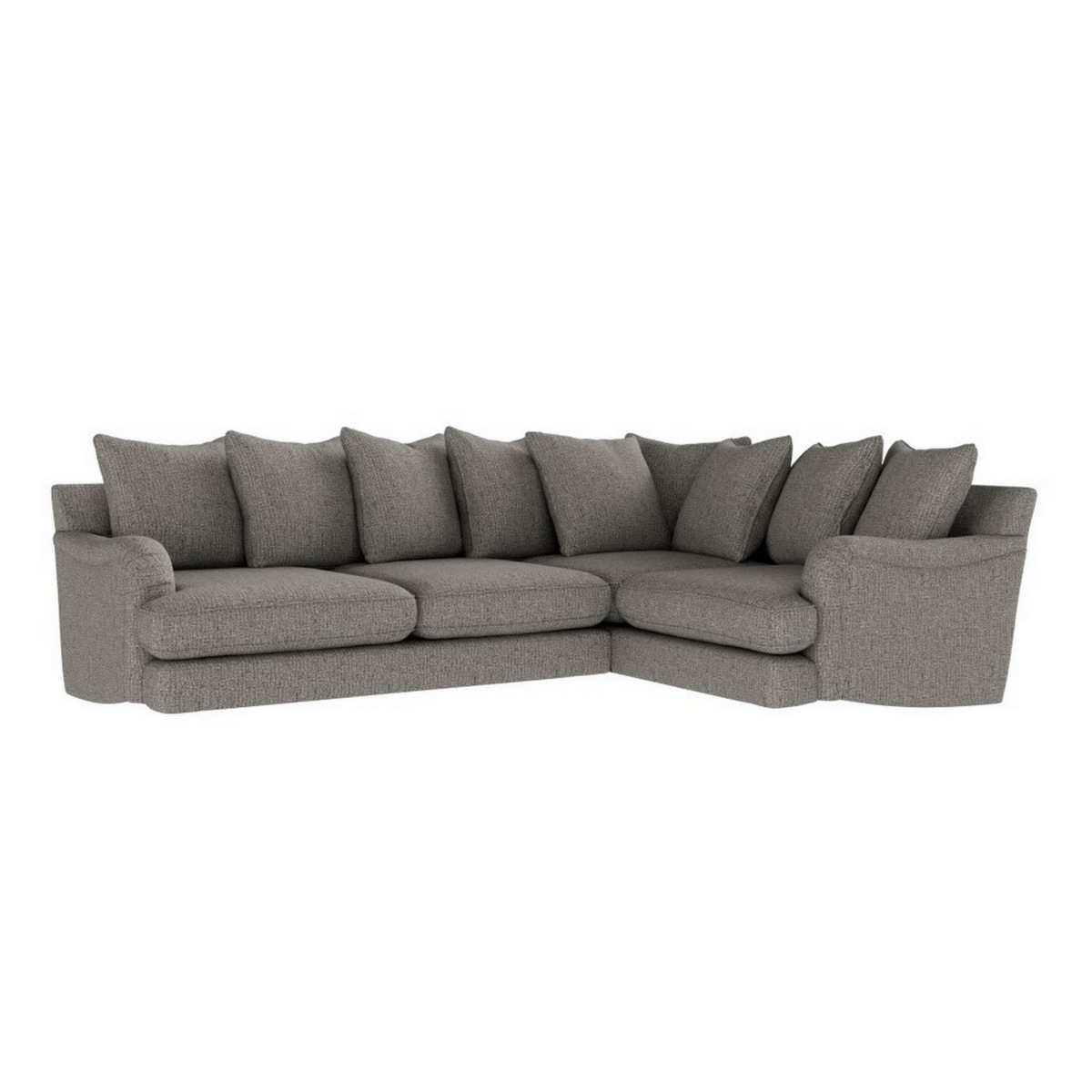 Elevate your living space with the Rochester Scatter back Corner Sofa, a right-hand configuration that blends timeless elegance with modern comfort. Crafted with care in Britain, this sofa features plush velvet upholstery available in a variety of colours, complemented by feather-filled scatter back cushions for an inviting look and feel. The pleated arms add a touch of sophistication, while the turned wooden feet provide a classic foundation. This made-to-order piece comes with a 10-year guarantee, ensuring it remains a centrepiece in your home for years to come.