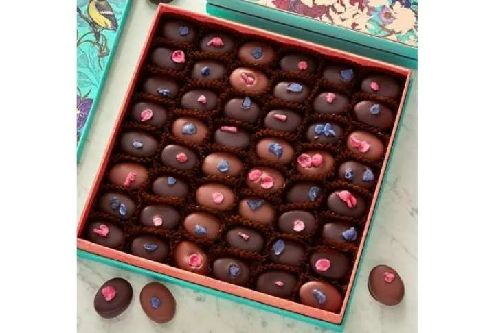 A box full with 475g of signature treats that is entirely handmade. As well a rich chocolate mix, they are infused with natural flower oils that blend with the chocolates beautifully.