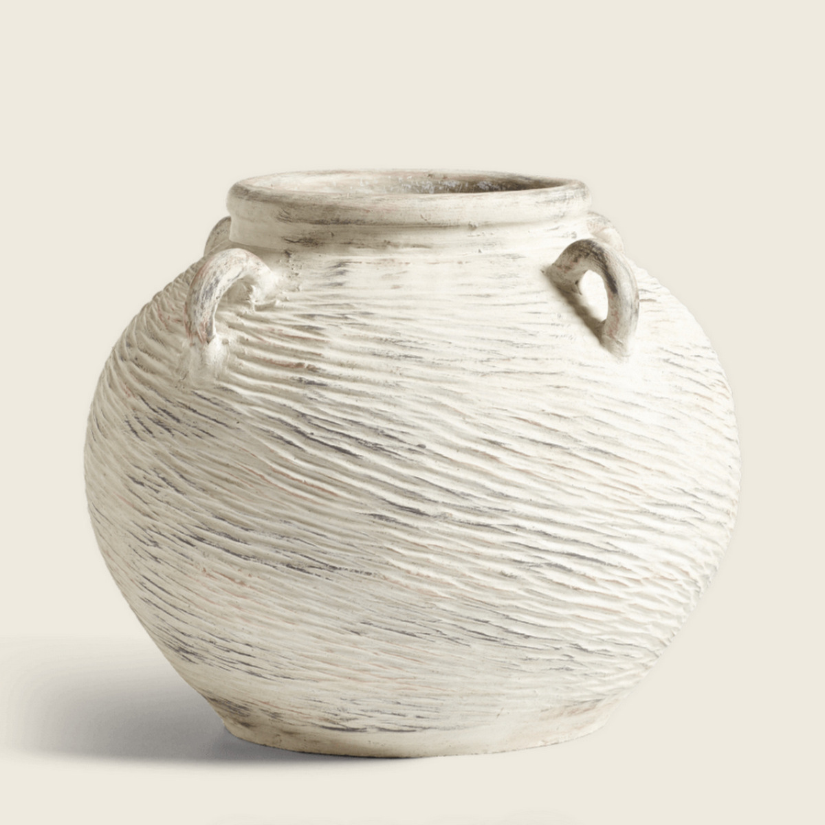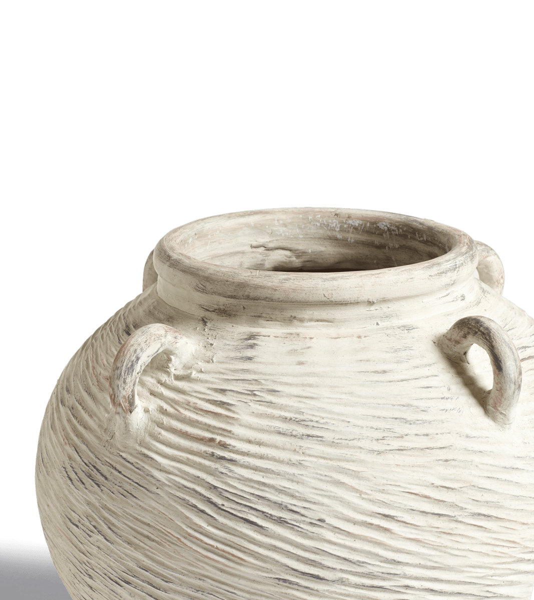 Embrace the timeless elegance of ancient Roman design with the Round Chasca Terracotta Planter. This exquisite piece, crafted from 100% terracotta, boasts a brushed white finish that exudes a sense of classic sophistication.