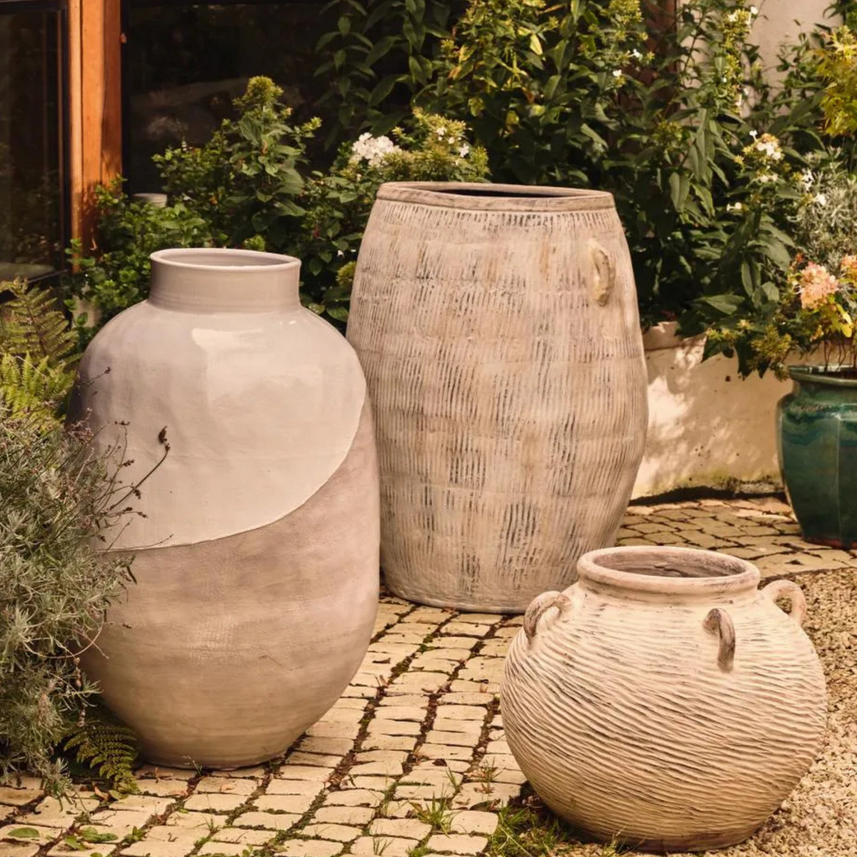 The planter’s curvaceous form is adorned with sweeping, uneven indentations, reminiscent of the intricate carvings found on Roman pottery. Standing at 41 cm in height and 50 cm in diameter, the Chasca Planter is not only a striking decorative item but also a functional piece for your gardening needs.