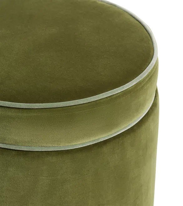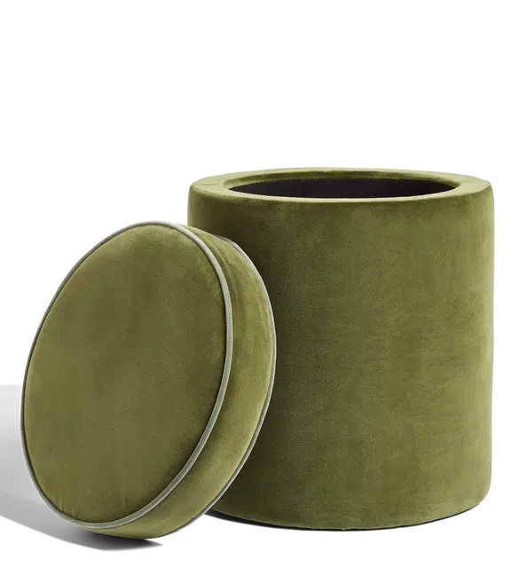 The Samena Spruce Velvet Ottoman is a versatile piece of furniture that can serve as a footstool, a side table, or a storage unit.