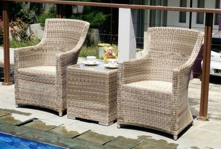 The Seville Duo Rattan Weave Set is a sunning patio solution that features two high back rattan chairs and an accompanying rattan side table for drinks.