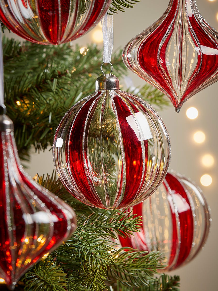 Elevate your festive décor with the Six Luxury Candy-Striped Glass Baubles from Cox and Cox. These handcrafted ornaments dazzle with their classic candy cane stripes and glittering silver lines, perfect for adding a traditional yet chic touch to your Christmas tree. Each bauble is thoughtfully designed with a silver-coloured metal cap and comes with a delicate white organza ribbon for easy hanging. With their timeless charm, these baubles are sure to become a treasured part of your holiday collection.