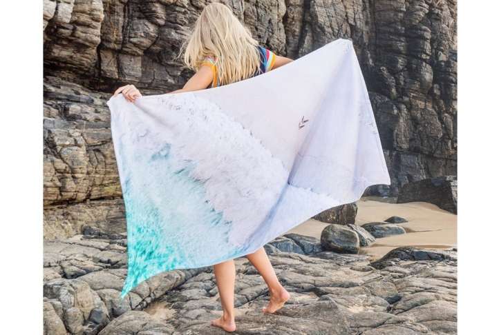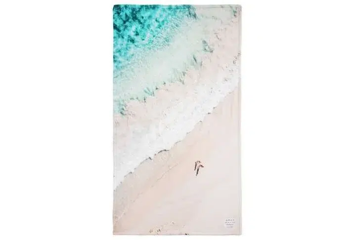 The large towel is made from 100% soft cotton and measures 162 x 91cm and features a digital print of the famous St Barths beach front