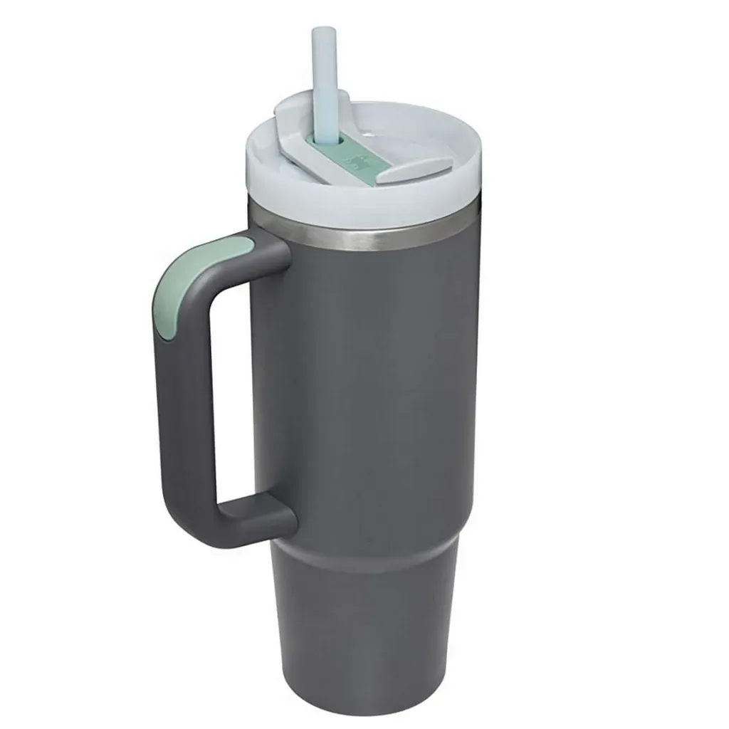 The Stanley Quencher H2.0 Stainless Steel Insulated Smoothie Tumbler in Charcoal is the perfect companion for keeping your drinks fresh and cold throughout the day. Crafted with precision and durability in mind, this tumbler is designed to withstand your active lifestyle while ensuring maximum beverage enjoyment.