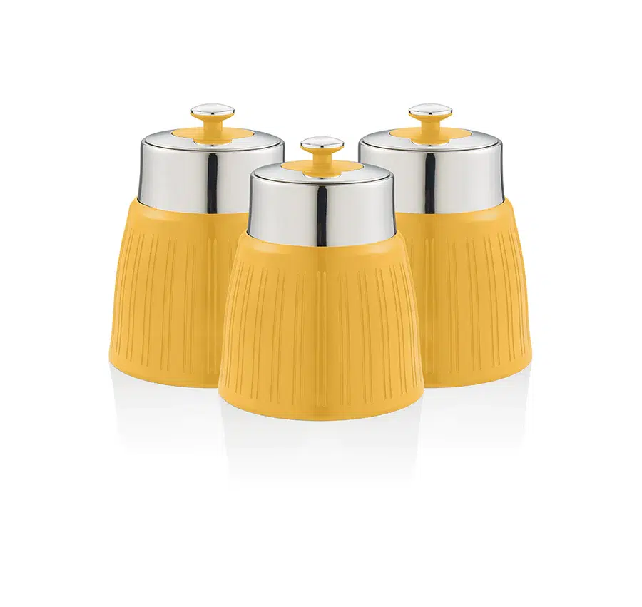 Keep your kitchen essentials fresh and stylish with the Swan Retro Set of 3 Canisters in Yellow. These sleek metal canisters are ideal for storing tea, coffee, sugar, flour, or any other dry goods.