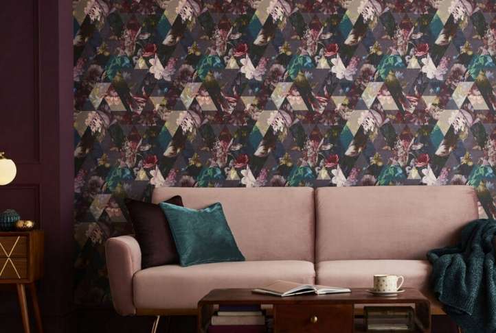 The Timepiece Amethyst Wallpaper is a striking mixture of floral and geometric diamonds that will brighten any room. Bring a real modern touch to any room with this unique wallpaper offering.