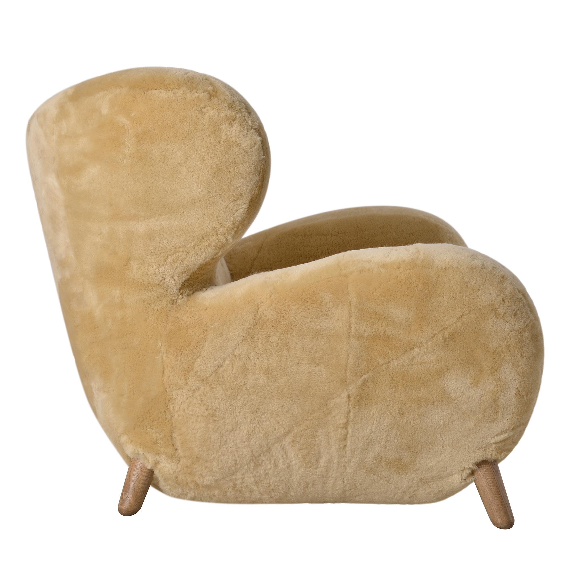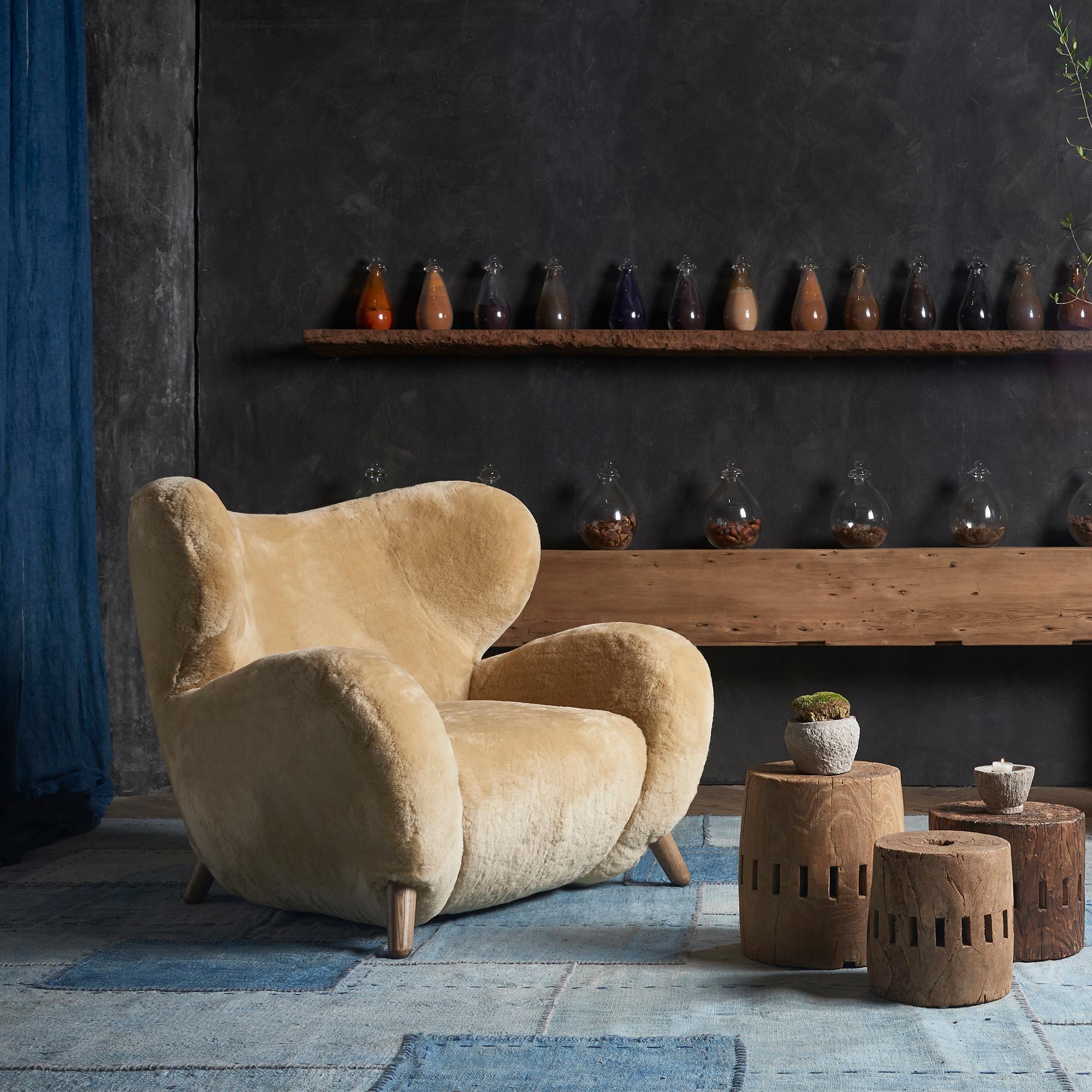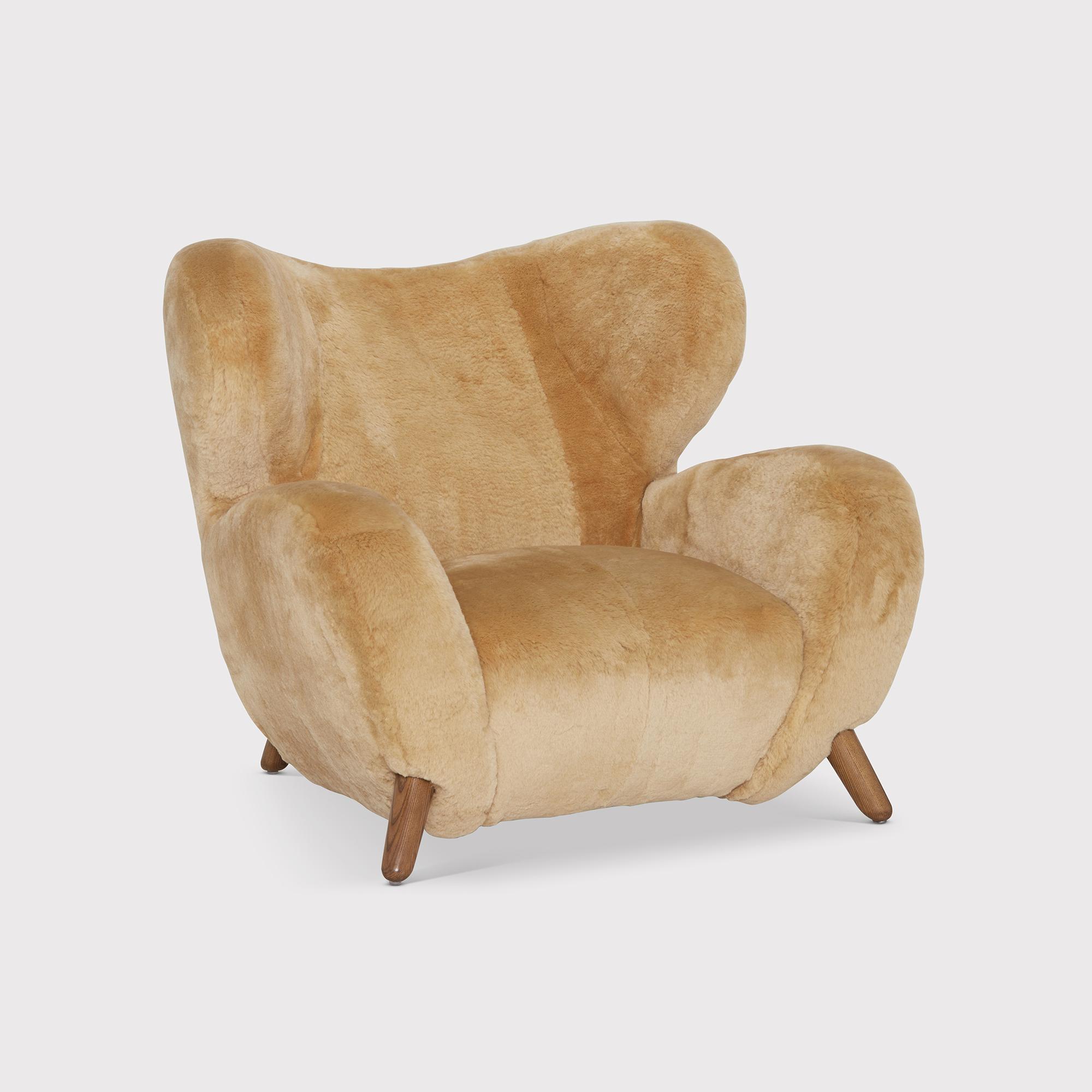The Manx Chair, a testament to exceptional craftsmanship, exudes a blend of rugged charm and luxurious comfort. Its design, inspired by the untamed beauty of the Isle of Man, showcases expansive curves and robust proportions, making it a statement piece for any living space. The chair’s indulgent seating experience is courtesy of the hand-selected pure New Zealand sheepskin upholstery, known for its extraordinary softness and plushness.