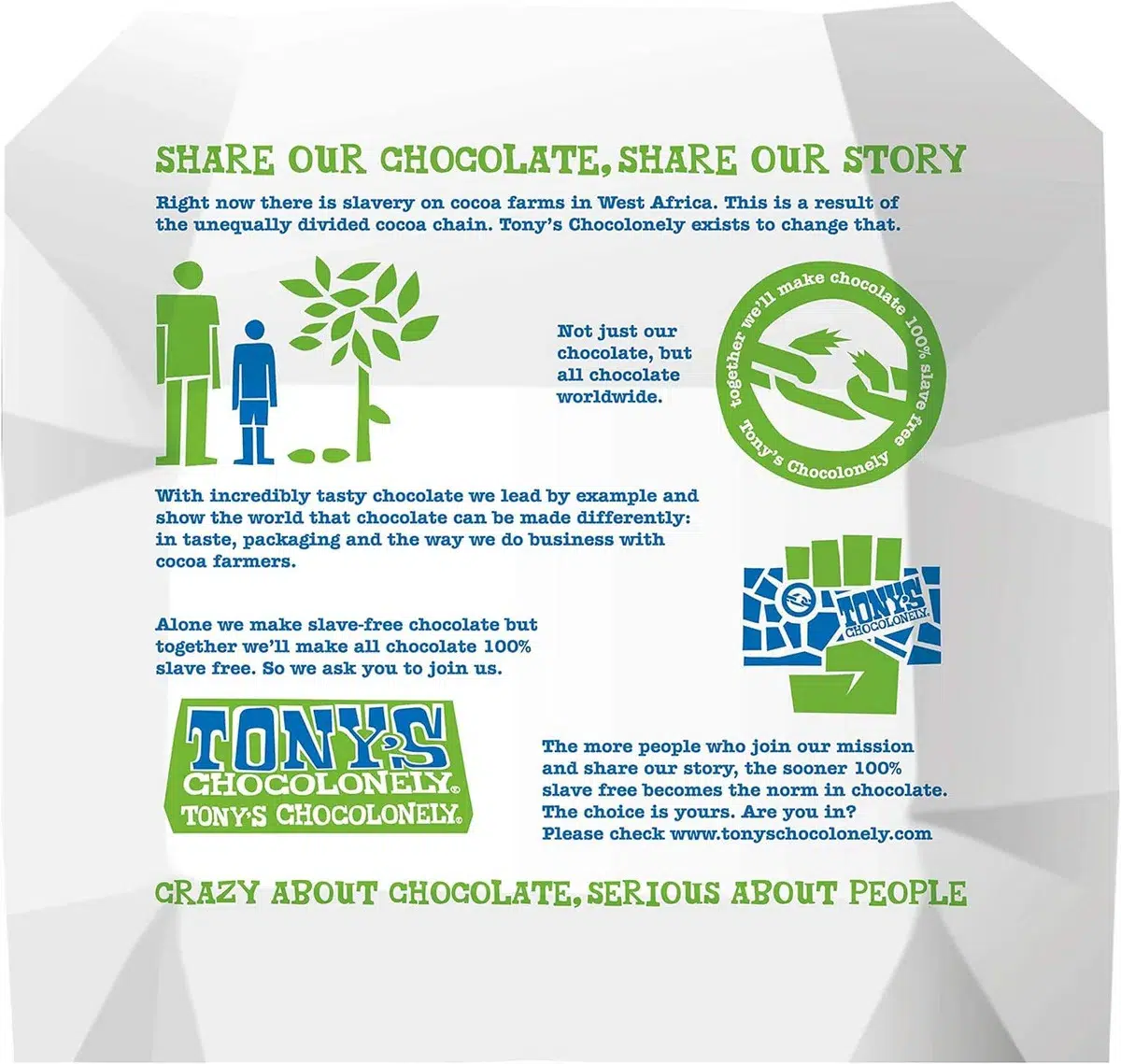 If you love dark chocolate with a hint of salt and crunch, you’ll love Tony’s Chocolonely Dark Almond Sea Salt Chocolate Bar. This delicious treat is made with 51% fair trade cocoa from Ghana and Ivory Coast, roasted almonds from California, and sea salt from the Netherlands.