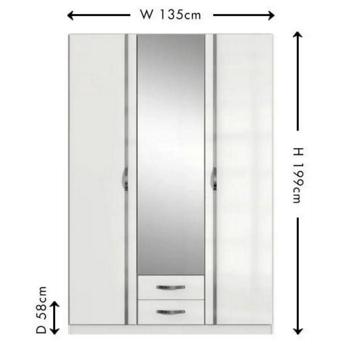 - Dimensions: W 135cm x D 58cm x H 199cm
