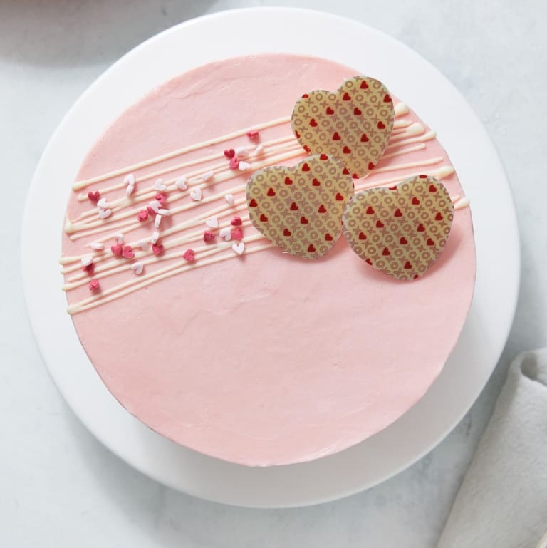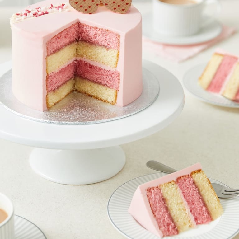 Celebrate love with the True Love Cake from M&S (Serves 14)! This beautiful cake features a light four-tier sponge cake, carefully hand-finished with pink vanilla buttercream and raspberry jam. It’s topped with white chocolate hearts, making it perfect for any romantic occasion.