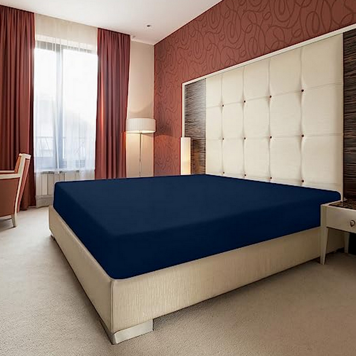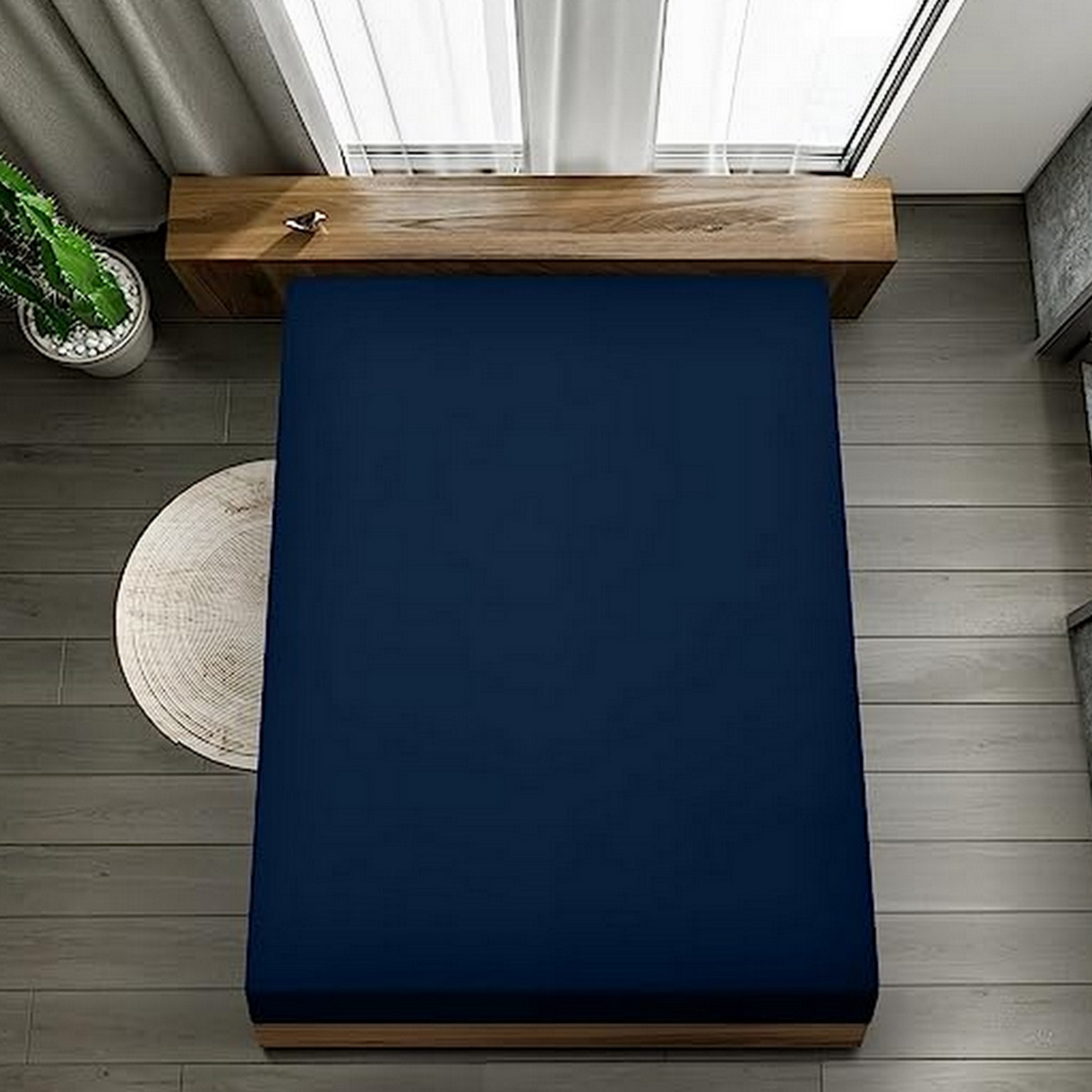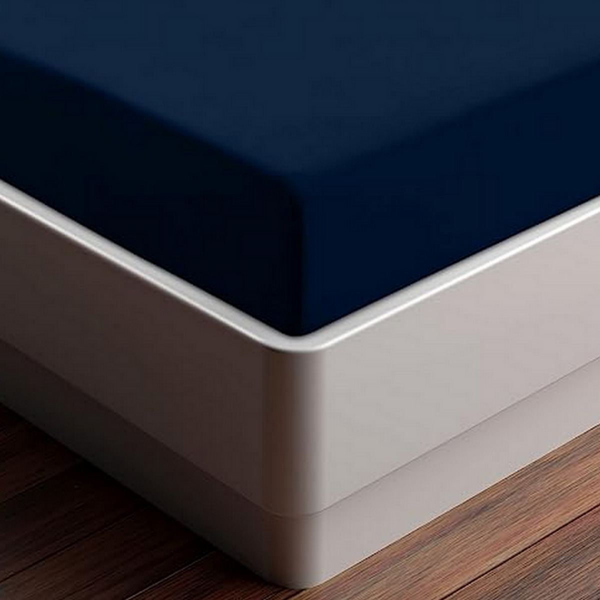 The deep microfibre fitted sheet in navy is the perfect addition to your bed. Available in various sizes, the fitted sheet will fit perfectly over your mattress, even if it has a topper on top.