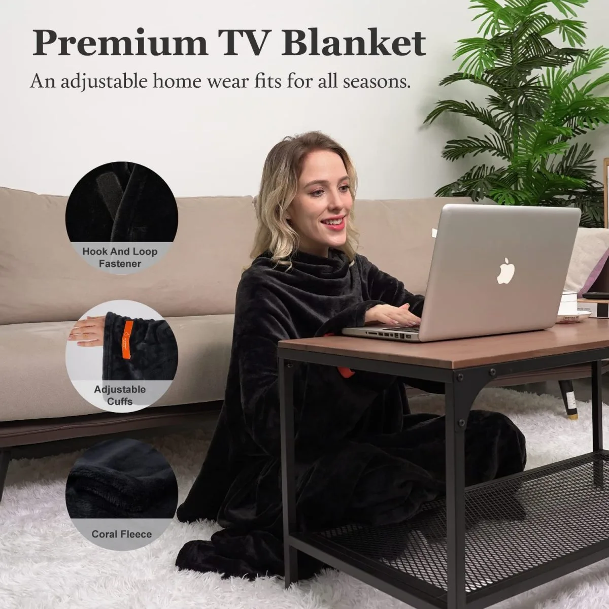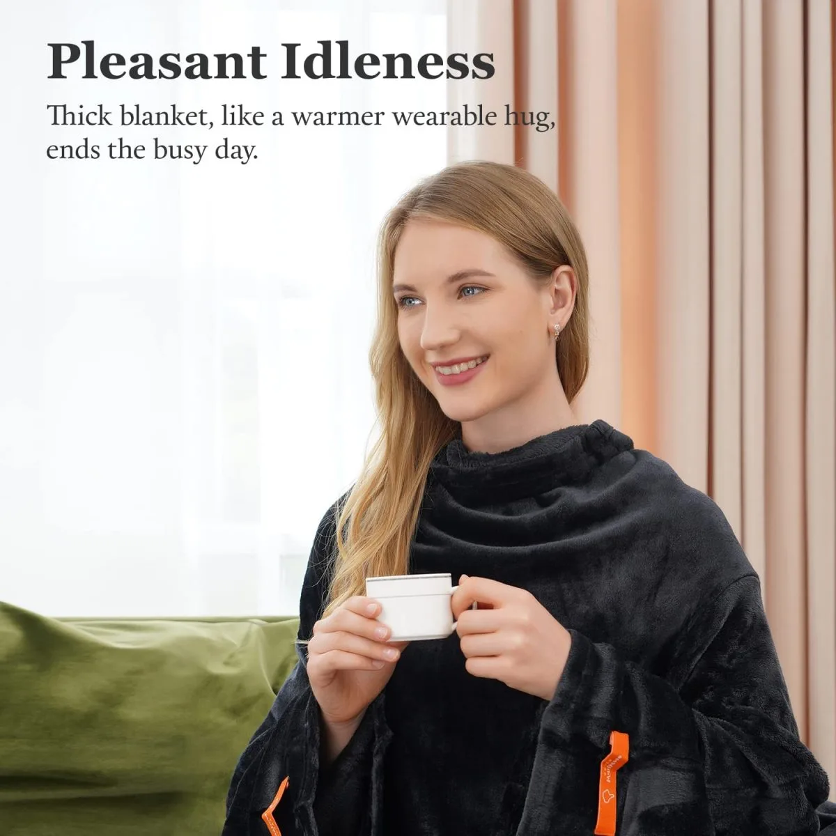 Bring instant cosiness with the black wearable snuggle blanket that has sleeves and rear fastentings.