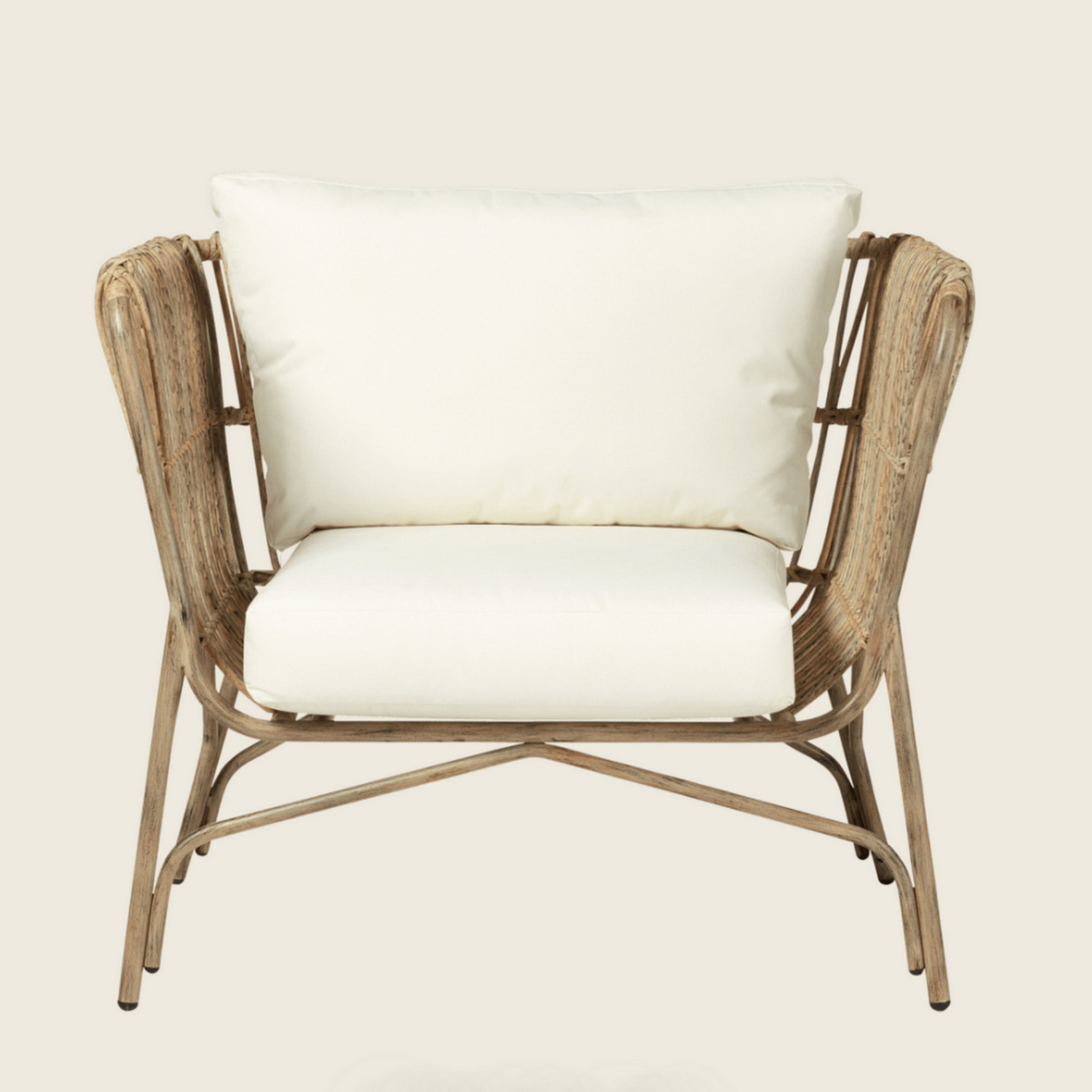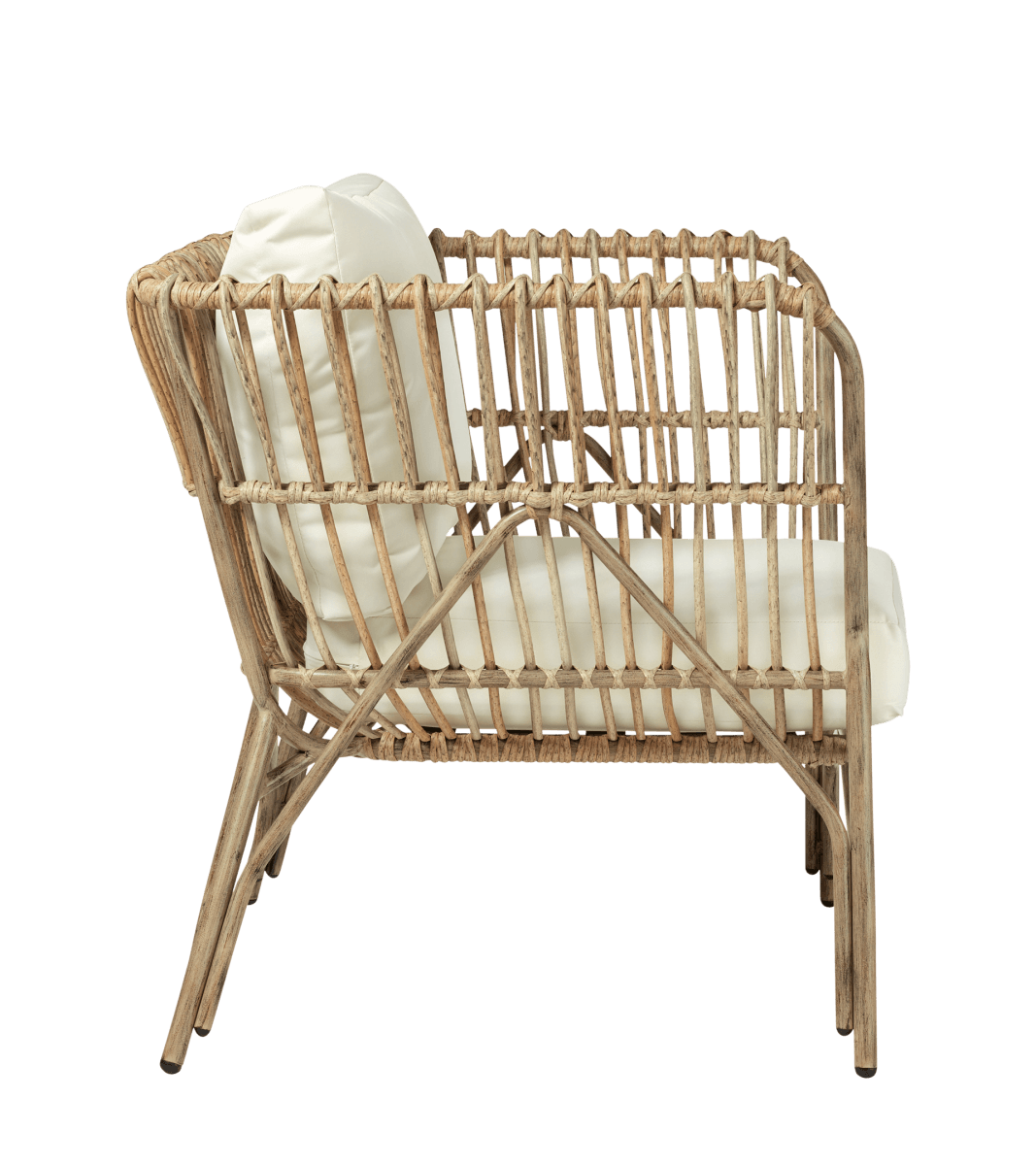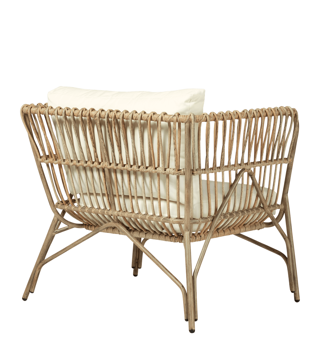 Introducing the Weybourne Armchair, a piece that exudes coastal charm and robust design. Crafted with a sturdy steel frame and adorned with synthetic rattan, this armchair is inspired by the reed beds of Weybourne, a picturesque village in Norfolk known for its traditional thatching and basket weaving.