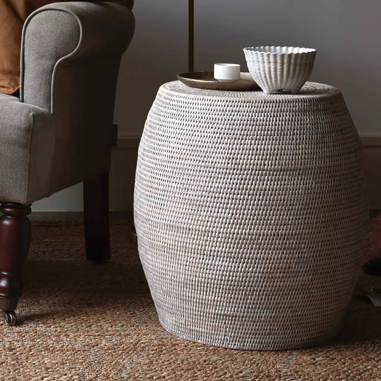 Add some natural charm and texture to your home with the White Rattan Weave Stool.