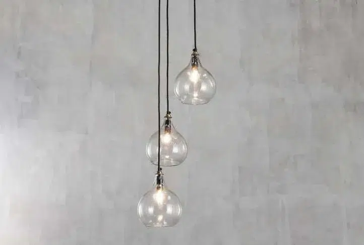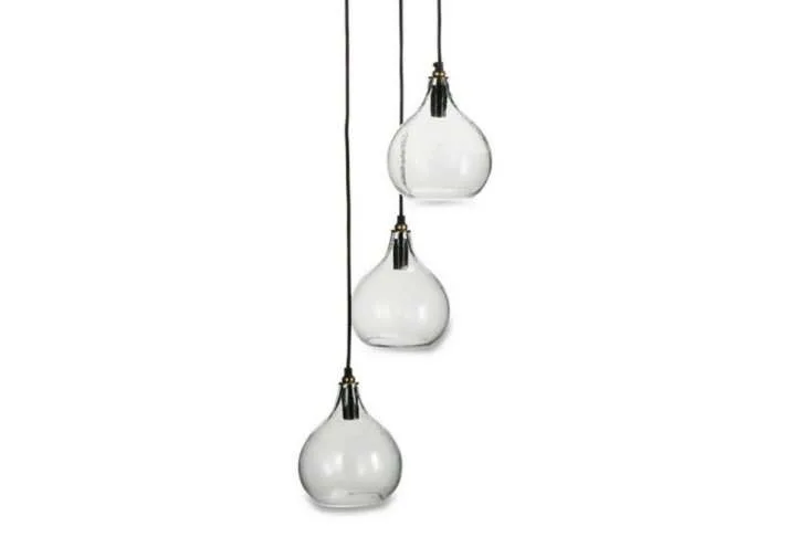 The Ziva Cluster Pendant with clear glass is a beautiful hand blown set of 3 pendent lights. The brown flex to each light can be adjusted as needed.